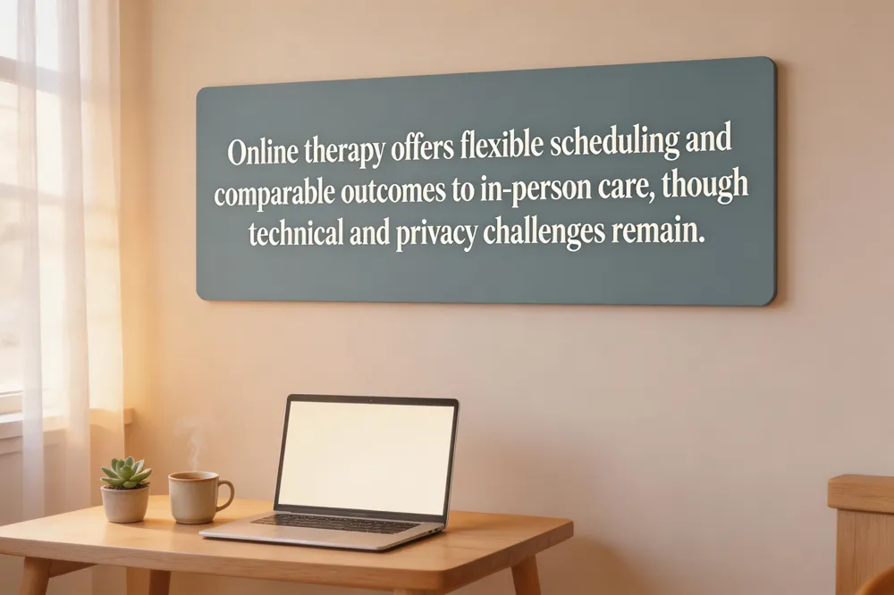 Online therapy has become a mainstream mental‑health option, with 89 % of psychologists using it in 2023 and 67 % working in hybrid models (JAMA Network Open; 2023). The convenience is clear: clients meet therapists from any internet‑connected location, eliminating travel, childcare, and time‑off work. Flexible scheduling—including evenings, weekends, and asynchronous messaging—fits busy families and digital‑native generations (APA, 2022). Research shows evidence‑based treatments such as CBT, DBT, and trauma‑focused therapy delivered via video are as effective as in‑person care for depression, anxiety, PTSD, and substance‑use disorders (Journal of Affective Disorders; 2021). A meta‑analysis of 34 RCTs reported no significant difference in symptom reduction between telehealth and face‑to‑face modalities, with comparable therapeutic alliance scores.