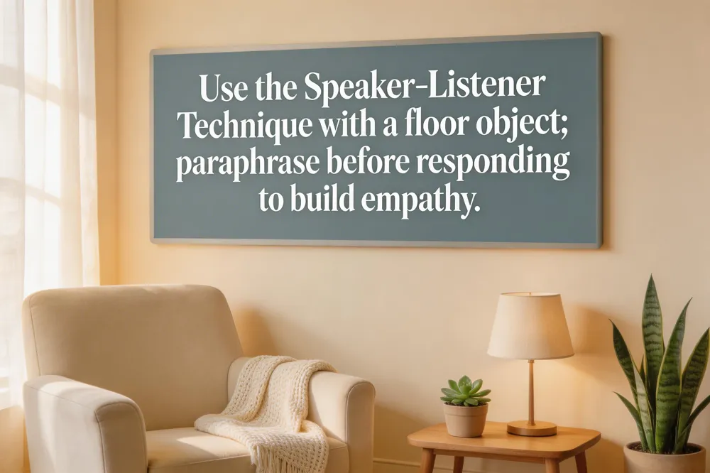 Before responding, the Listener must paraphrase the Speaker’s words—"So what I hear you saying is…"—and reflect any underlying emotion. Research shows that paraphrasing boosts perceived validation by roughly 30 % in couples therapy and activates brain pathways linked to empathy. The Gottman Method incorporates this exact step, finding that couples who practice SLT experience lower physiological arousal and higher relationship satisfaction over time.