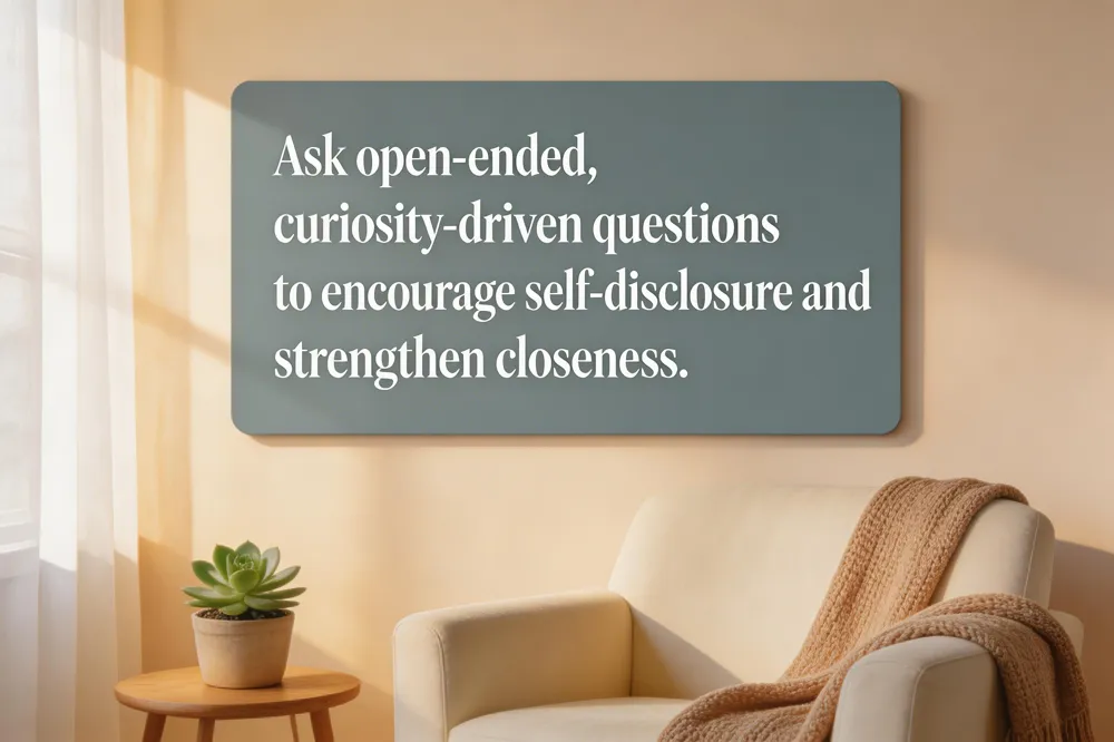 Why they deepen dialogue – Self‑disclosure triggered by open‑ended prompts activates the vulnerability theory of relational psychology: sharing perceived weaknesses builds trust and emotional safety. Active listening behaviors—paraphrasing, reflective questioning, summarizing—then reinforce this bond, increasing perceived validation by up to 30 % in couples‑therapy studies.