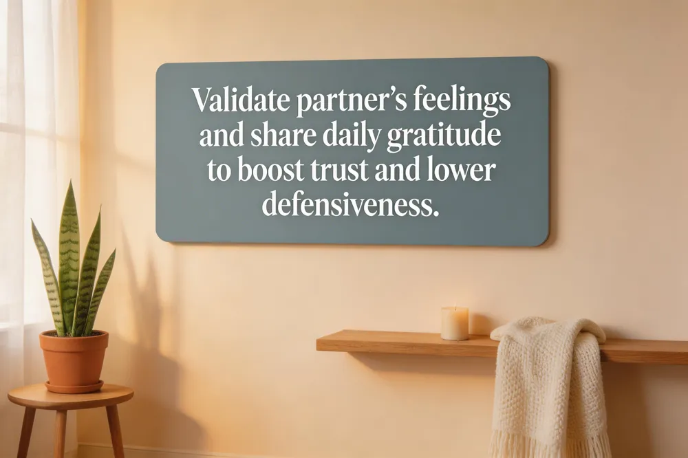 Validation feels like a mirror that reflects back what your partner is experiencing. In practice, you might use mirroring—repeating the partner’s words in your own language—to show you heard the literal content, and empathy reading, which goes a step further by naming the underlying feeling (e.g., “It sounds like you felt hurt when that happened”). These techniques, supported by the Gottman Method and active‑listening research, lower defensiveness and increase perceived empathy by up to 30%.
