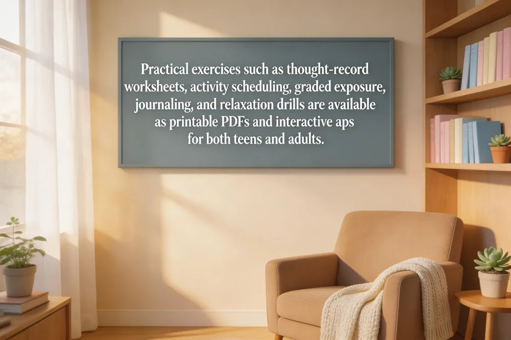 Thought‑record and journaling tools help clients capture automatic thoughts, emotions, and evidence, turning vague worries into concrete data that can be re‑framed. behavioral activation and Activity scheduling counteract avoidance by planning rewarding tasks and tracking completion, which lifts mood and builds confidence. Exposure exercises and graded tasks break feared situations into manageable steps, allowing systematic desensitisation and reduction of anxiety. For adolescents, resources such as printable worksheets, downloadable PDFs, and interactive apps provide age‑appropriate language and visual aids.