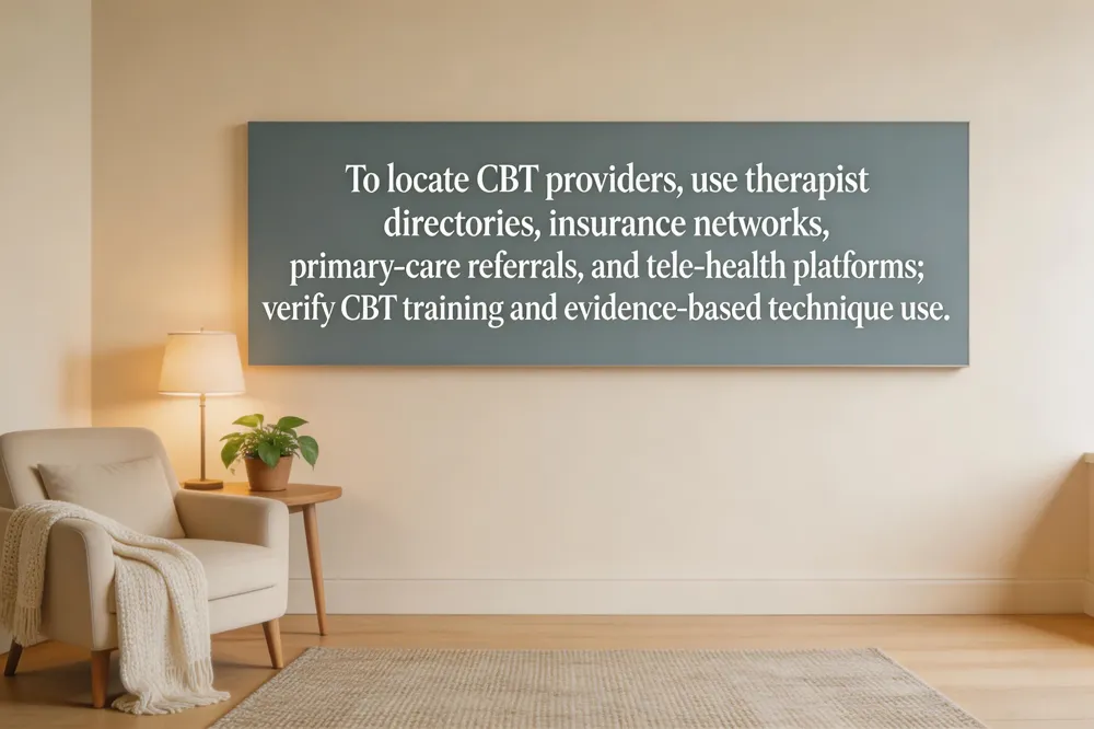 To locate qualified CBT clinicians, start with reputable therapist directories like Psychology Today, filtering by “Cognitive Behavioral Therapy” and your city or zip code. Your health‑insurance provider’s network portal can also identify in‑person and telehealth CBT therapists who accept your plan; many practices, such as Julia Flynn Counseling, offer both office and virtual appointments for flexibility. Ask your primary‑care doctor for a referral, check local mental‑health clinics, and read reviews to verify licensure and CBT training. Online and telehealth options expand access—many therapists provide secure video sessions, and self‑guided platforms (e.g., NHS Every Mind Matters) can supplement treatment. When contacting a therapist, confirm that they use evidence‑based CBT techniques, such as cognitive restructuring, behavioral activation, and exposure therapy, and that they tailor the approach to your specific concerns. This systematic search ensures you find a qualified, insurance‑covered CBT provider who fits your schedule and needs.