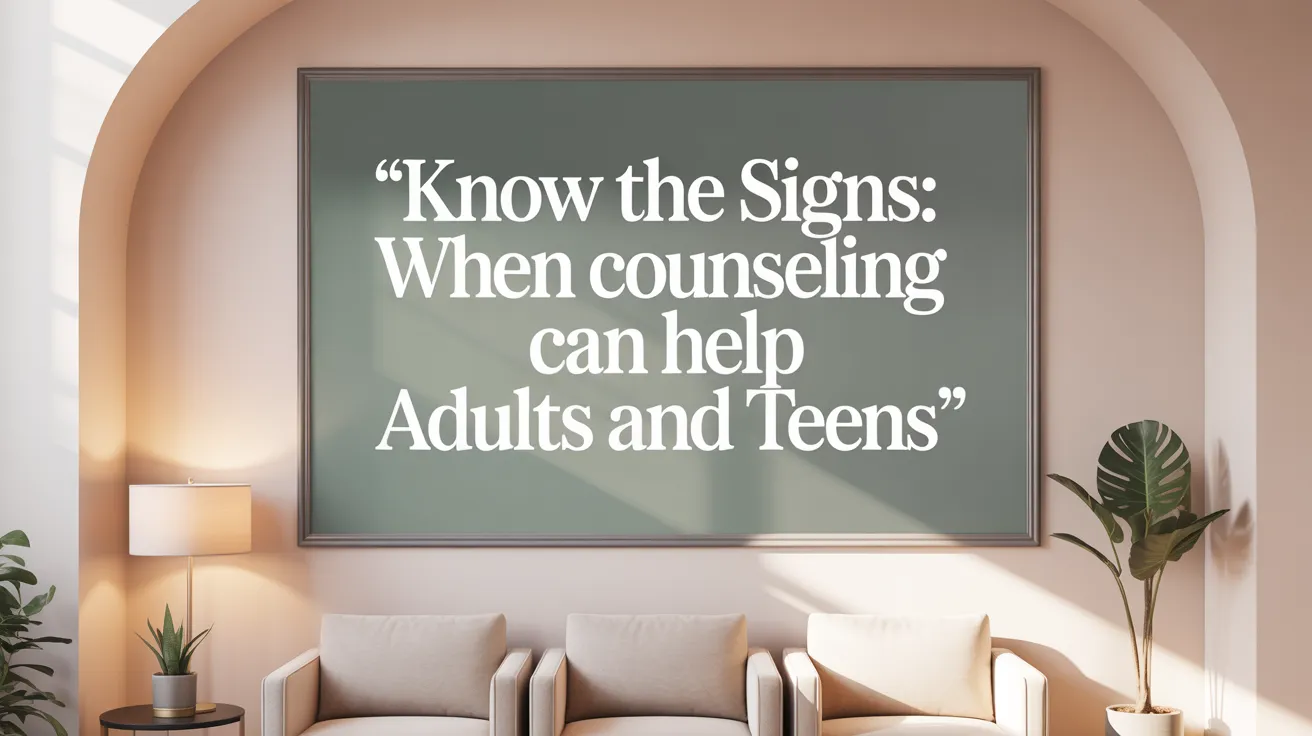 Adults and teens might need counseling when they face ongoing feelings of sadness, anxiety, or irritability. These emotional states often come with behavioral changes like withdrawing from social activities, difficulties in school or work, and noticeable mood swings.