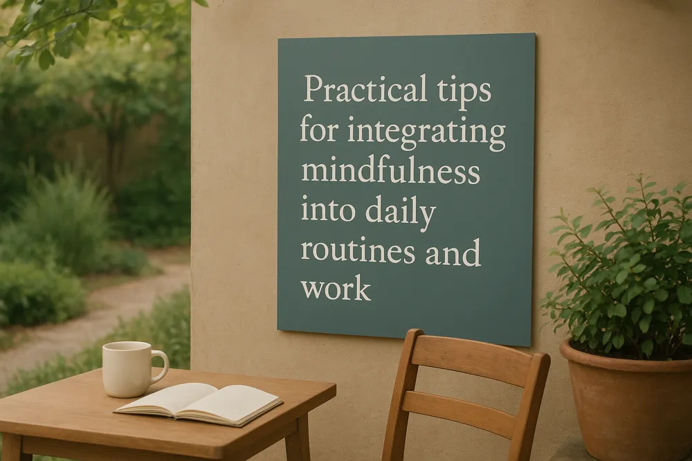 At work, mindfulness can be implemented through short mindful breathing breaks, practising single-tasking with full awareness, and mindful communication that fosters clearer, calmer interactions. These techniques reduce stress, enhance focus, and improve workplace relationships. See Workplace Mindfulness Techniques for more details.