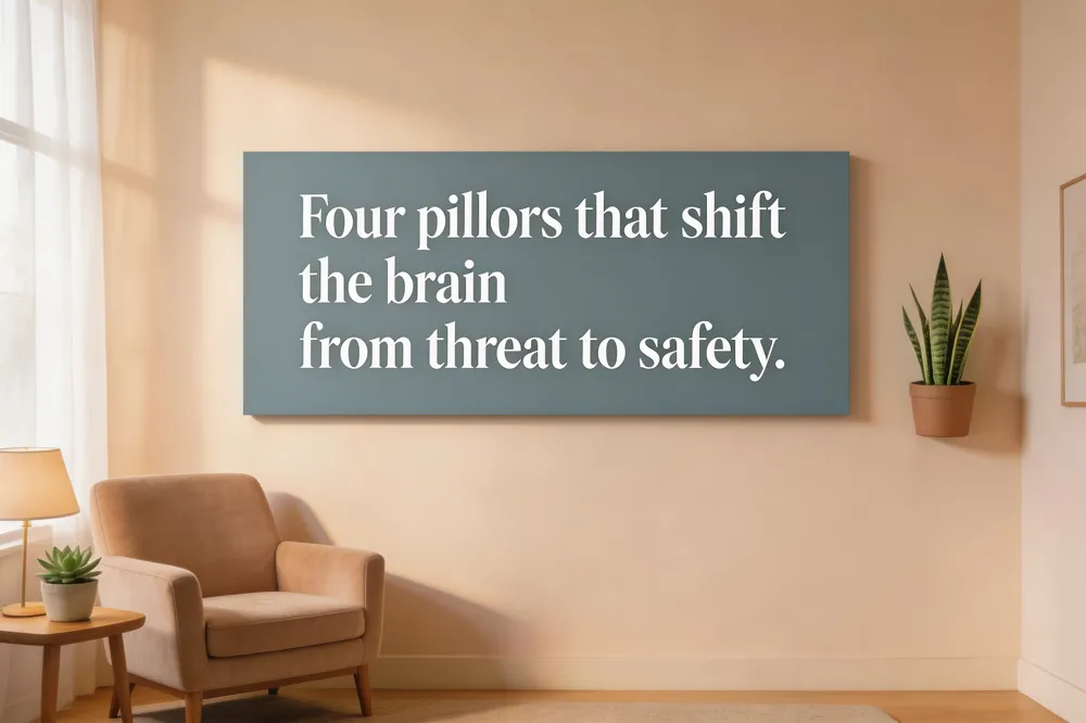 Compassion‑Focused Therapy (CFT) is built around four inter‑related elements that together shift the brain from threat‑dominance to a state of safety and self‑soothing. 1) Psycho‑education – clients learn how emotions arise from three evolutionary affect‑regulation systems (threat, drive, soothing) and why self‑criticism fuels anxiety. 2) Mindfulness – practiced to heighten present‑moment awareness, calm the threat system, and create space for compassionate observation of thoughts and sensations. 3) Compassionate Mind Training – exercises such as soothing rhythm breathing and compassionate imagery and kind self‑talk develop an inner caring voice that replaces harsh self‑criticism and activate the parasympathetic nervous system. 4) Shame Management – targeted strategies address shame, guilt, and the inner critic, allowing clients to reinterpret suffering with common humanity and cultivate lasting self‑compassion. Together, these four elements provide a practical roadmap for reducing panic‑related anxiety and building emotional resilience.