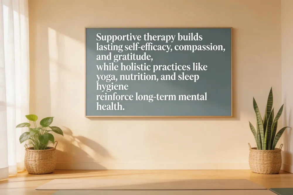 Benefits of supportive therapy – Enhances emotional resilience, expands coping skills, improves self‑worth, and lowers isolation, leading to quicker symptom stabilization and better overall quality of life.