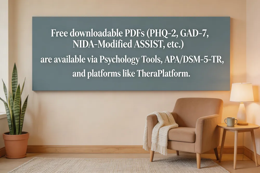Clinicians seeking reliable, evidence‑based tools can quickly obtain downloadable PDF versions of the most widely used mental‑health assessments. The American Psychological Association and the DSM‑5‑TR online resource list provide Level 1 and Level 2 cross‑cutting symptom scales—covering depression, anxiety, sleep disturbance, and more—that can be printed or saved for intake, screening, and outcome monitoring. Free‑to‑use questionnaires such as the PHQ‑2, CAGE‑AID, GAD‑7, and the Beck Depression Inventory are readily available on the Psychology Tools website, which links directly to PDF files for each instrument. For substance‑use screening, the NIDA‑Modified ASSIST PDF is included in the DSM‑5‑TR toolkit. These PDFs support clinicians in delivering personalized care while maintaining compliance with licensing, confidentiality, and ethical standards. Integration into practice is seamless: PDFs can be uploaded to electronic health‑record platforms, embedded in telehealth portals, or printed for paper‑based administration. Digital assessment platforms—e.g., TheraPlatform, Creyos, and Pearson—also host secure PDF downloads, allowing rapid distribution to clients and easy scoring. By leveraging these standardized, downloadable tools, therapists can ensure that every client receives a thorough, data‑driven evaluation that guides tailored treatment planning and ongoing progress monitoring.