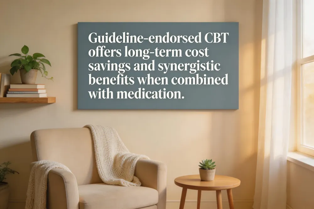 Both the UK’s NICE and the American Psychological Association (APA) list CBT as a first‑line for most depressive and anxiety disorders, endorsing it for individual, group, or self‑help formats depending on severity. Research shows that, although initial CBT sessions may cost more than medication alone, the therapy’s durable benefits reduce relapse rates and lower long‑term health‑care expenditures, making it cost‑effective over years. Moreover, meta‑analyses reveal that combining CBT with pharmacotherapy yields superior outcomes for conditions such as major depression, bipolar disorder, and PTSD, often allowing lower medication doses and fewer side‑effects. Clinicians therefore routinely integrate CBT with medication, tailoring treatment plans to each client’s needs while benefiting from guideline‑driven, evidence‑based practice.