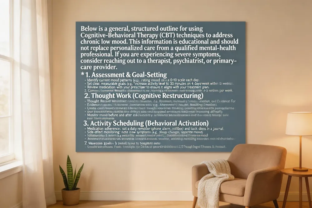 Persistent depressive disorder (formerly dysthymia) is characterized by a chronic low‑grade low that can last for years and often intersperses with more severe depressive episodes. Because the condition is long‑standing, treatment must be both structured and flexible. Cognitive‑behavioral therapy (CBT) offers a time‑limited, goal‑oriented framework that helps clients identify the automatic thoughts, cognitive distortions, and underlying core beliefs that perpetuate their low mood. By learning to challenge these thoughts, schedule rewarding activities, and practice problem‑solving, patients can break the cycle that keeps depressive symptoms entrenched.