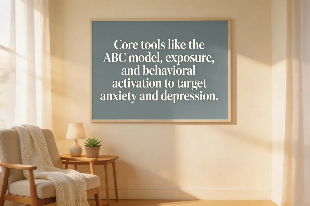 Anxiety‑focused CBT protocols – Core techniques include the ABC model (Activating event, Beliefs, Consequences), exposure exercises, and worry‑time scheduling. Clients learn to identify automatic anxiety thoughts, challenge cognitive distortions such as catastrophizing, and replace them with balanced alternatives. Behavioral experiments and graded exposure reduce avoidance, while relaxation training (e.g., diaphragmatic breathing) lowers physiological arousal.