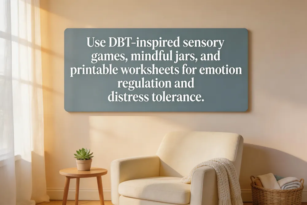 DBT’s mindfulness module equips adolescents with the “what” and “how” of staying present. Simple activities—exploring a piece of fruit with all five senses, a brief body‑scan, or listening attentively to a favorite song—teach observation and description. Fun games like “Spidey‑senses” (focusing on smell, sight, hearing, taste, touch) and the “mindful jar” (glitter swirling to symbolize emotions) transform mindfulness into relatable practice, bolstering emotion regulation, distress tolerance, and interpersonal effectiveness.