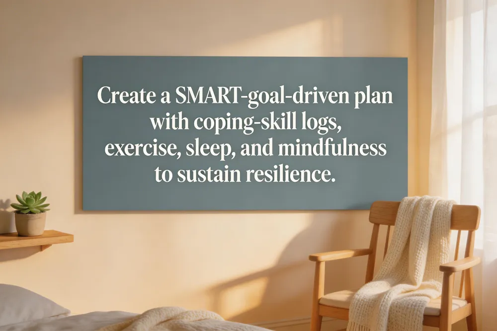 Integrating mindfulness, exercise, and sleep reinforces resilience: short breath‑focus or 5‑4‑3‑2‑1 grounding sessions (2‑5 min) calm the nervous system; a 20‑minute walk or yoga flow boosts endorphins; consistent 8‑10 hour sleep restores pre‑frontal regulation.