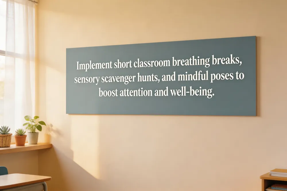 5‑Minute Mindfulness Activities for Students – Brief breaks with counting breaths, “colour breathing,” or “birthday‑cake breathing” can be done at a desk. Pair the breath with a quick 5‑4‑3‑2‑1 scan or a gratitude thought to reset focus and reduce stress.