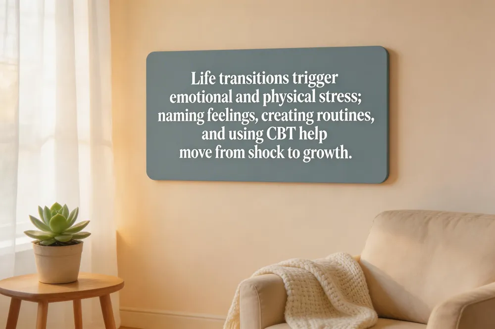 Life transition counseling is a specialized form of therapy that helps individuals navigate planned or unexpected changes—such as moving, divorce, career shifts, parenthood, or loss—by providing a safe, non‑judgmental space to explore emotions and set realistic goals. People commonly seek help when they experience persistent anxiety, sadness, sleep disturbances, or a sense of being stuck during these periods. Evidence‑based research shows that engaging in counseling reduces symptoms of anxiety and depression by 30‑60%, lowers cortisol levels through mindfulness practices, and improves adjustment by fostering resilience and adaptive coping. Approaches like Cognitive‑Behavioral Therapy, solution‑focused planning, narrative restructuring, and mindfulness‑based interventions are tailored to each client’s unique needs, delivering measurable improvements in emotional regulation and overall well‑being.