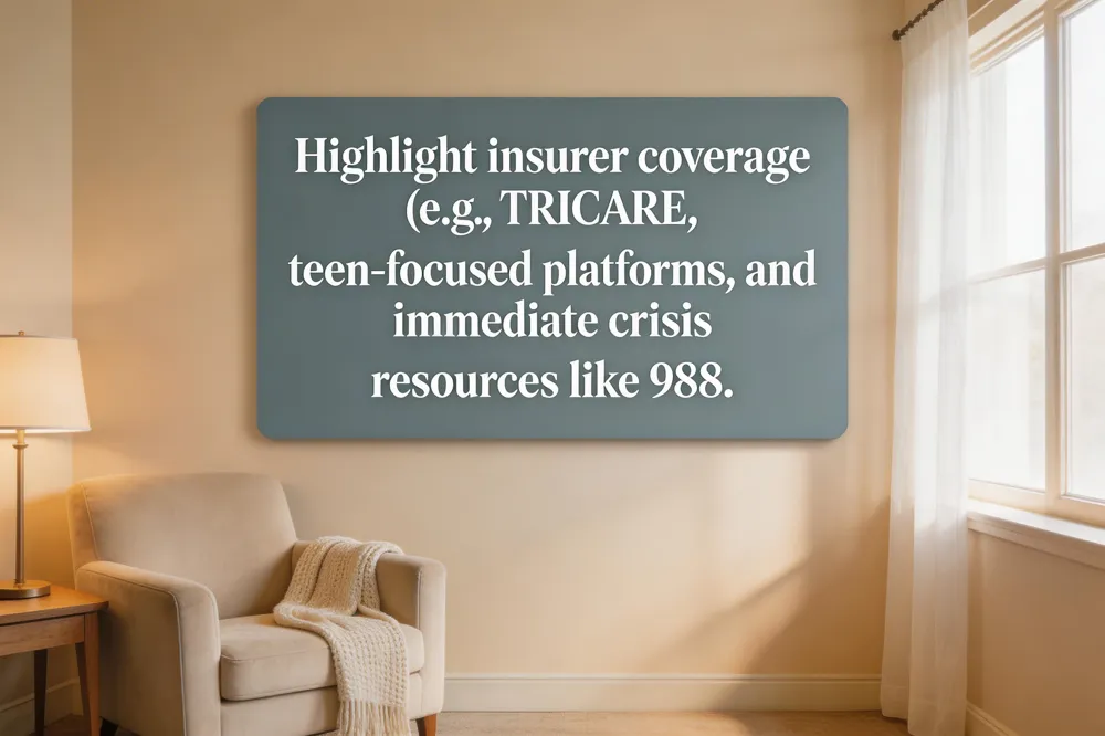 Telehealth for children and teens is increasingly covered by U.S. insurers, including TRICARE. To use TRICARE, families verify that the therapist is in‑network (via the Find a Doctor tool or regional contractor), schedule a video or phone visit through MyTRICARE, and let the provider bill TRICARE directly; most outpatient mental‑health visits do not need prior authorization, though cost‑share should be confirmed.